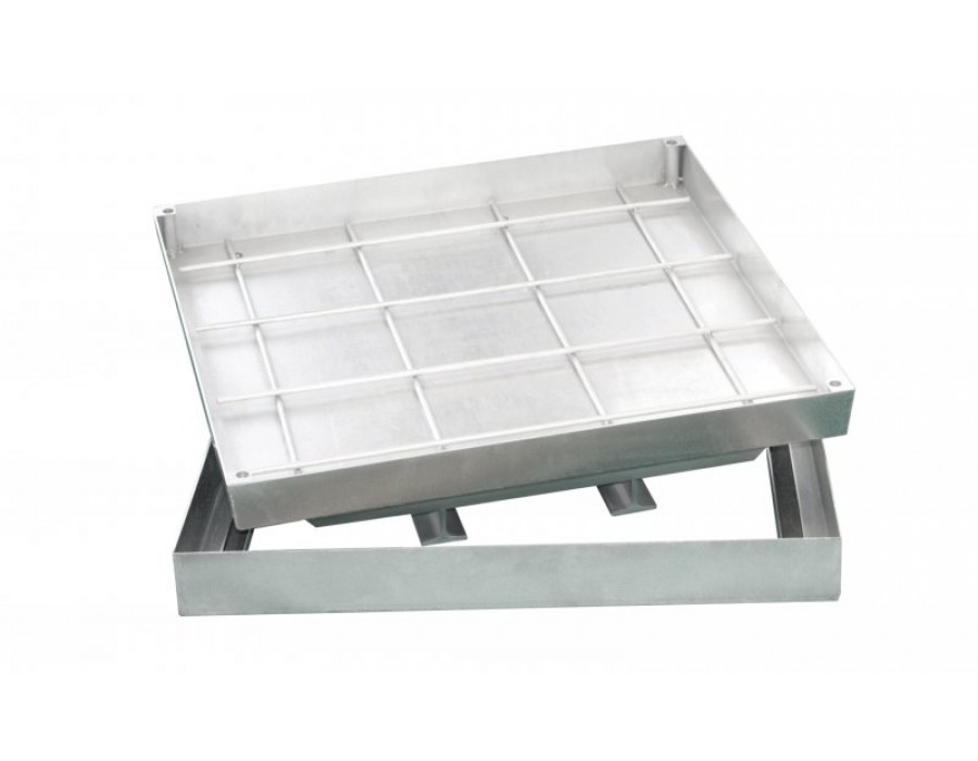 Снизу крышка усилена дополнительными профилями. В раме выполнен сплошной резиновый уплотнитель по периметру посадки.