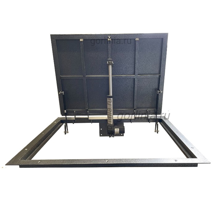 К стандартной модели люка в погреб SТЕЛС прибавляется материальная часть: электропривод - актуатор, блок управления и кнопка открывания - закрывания. В комплектацию люка в подвал с электроподъемником не входят газовые амортизаторы и замок со съемной ручкой ключом.