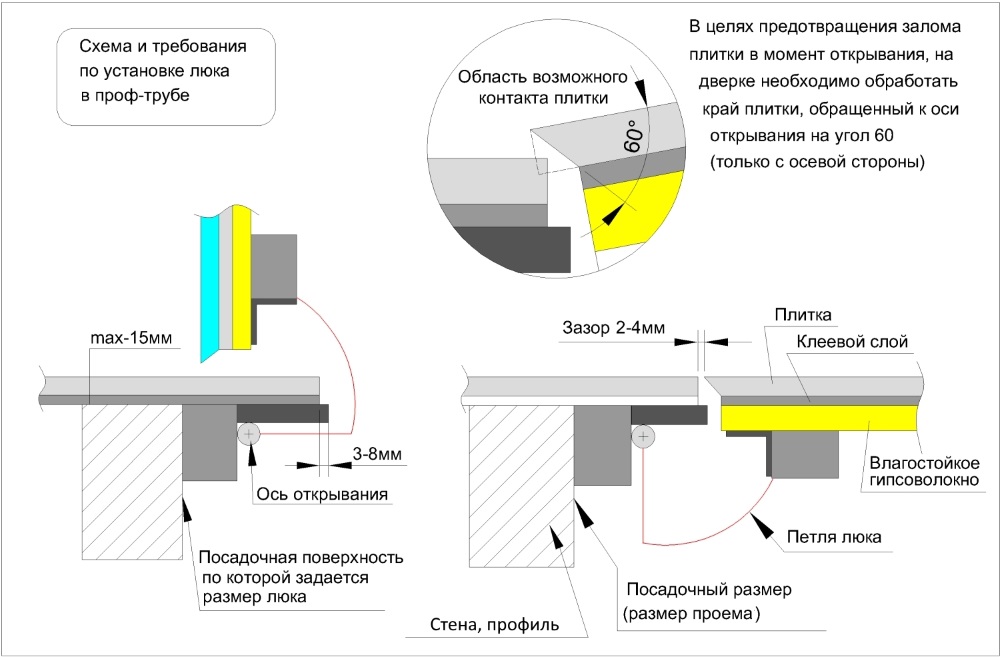 Внимание! Допускается вылет плитки за размер полотна 1180х478 по ширине и по нижней до 10 мм. Сторону петли необходимо заточить под углом 60° для бесконтактного поворота шарниров с одной осью вращения. Если планируете выход за допуск свеса декора: сообщите нам об этом в ТЗ.