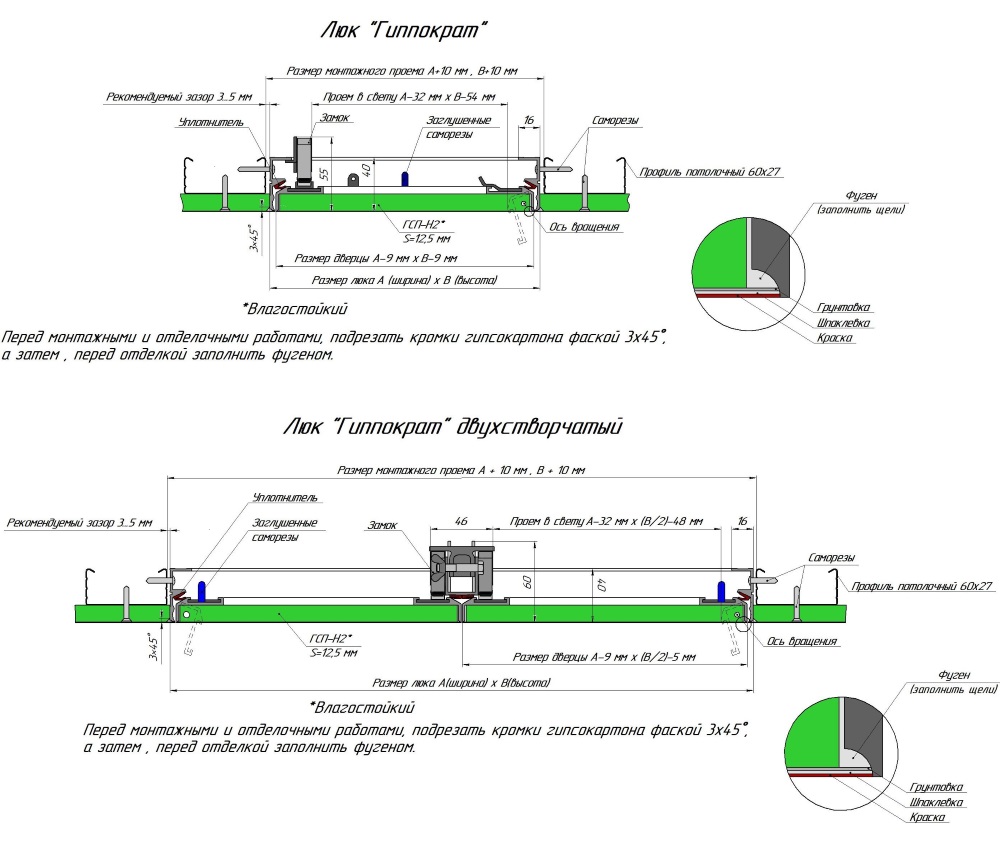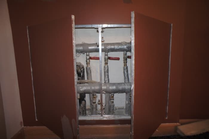 Конструкция крепится в каркас перегородки, выставляется в уровень финишного слоя, далее декорируется материалом общей отделки поверхности. Маяками служит профиль полотна, заполненного гипсоволокном.
