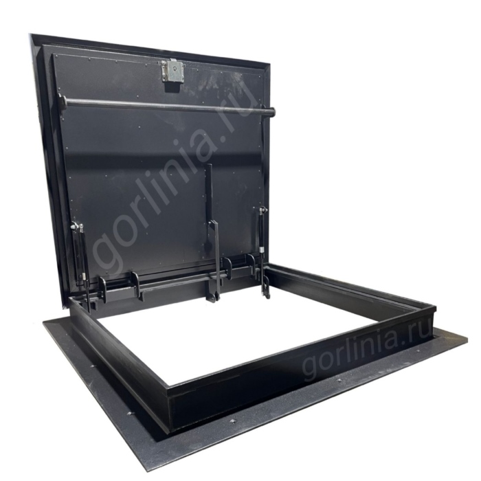 Откидная прямоугольная крышка заполнена сверху гладким кровельным листом 2 мм с загнутыми книзу краями, вылетающими на 25 мм за периметр внешней стенки. Внутри каркаса створки между ребрами обвязки проложен рулонный минеральный утеплитель 50 мм, подшитый снизу листовой сталью 1 мм.