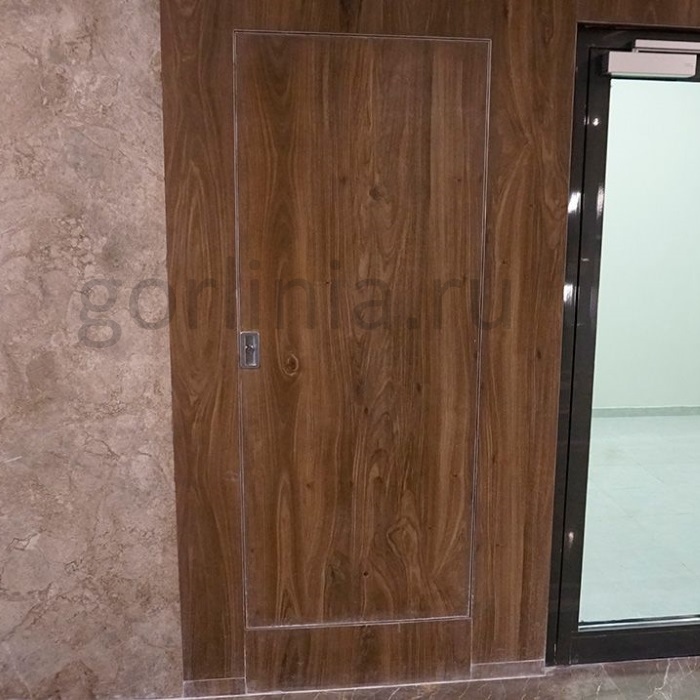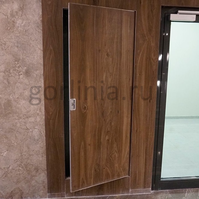 Теплоизолирующая способность достигается вторым слоем огнестойкого гипсоволокна ГСП-DF, минеральной плитой, а дымогазопроницаемость - дверной терморасширяющейся лентой в раме.