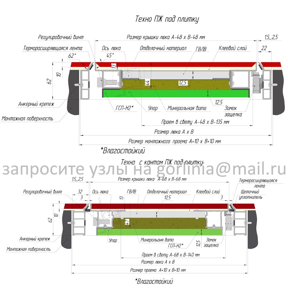 Базовая конструкция из коробчатого алюминиевого профиля на осевых шарнирах доработана огнеупорными элементами: минеральной плитой в сэндвиче из ГВЛ, термоактивным ленточным уплотнителем по притвору в раме.